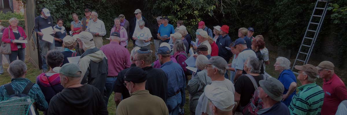 Een grote groep van vrijwilligers op een Joodse begraafplaats luistert naar Kees Sybrandi.Doriet Begemann2024-03-07T10:45:54+01:00